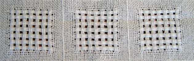 Il n'est pas rare de retrouver sur un fond de toile des groupes de fils en relief qui découpent des motifs recherchés. Il est donc possible de relever sur ces toiles des losanges symétriques ou non et des contours de grain d'orge.